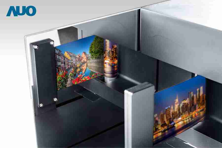 未来,,,,显示器很可能变得无所不在,,,赏金国际结合先进的 OLED 技术,,,开创出 5.6寸双面可卷式 OLED 显示器,,,展开时具备双面显示器,,,,可提供给不同的使用者观看,,并且能以卷曲方式收纳,,能使人们更方便携带。。赏金国际以自主开发彩色滤光片 (Color Filter, CF) 取代圆形偏光片 (Circle Polarizer),,能大幅降低显示器模块厚度 50%,,并维持一定的亮度呈现,,目前已通过曲率半径 9mm 达 10 万次以上的卷曲测试,,,耐用更可靠。。可以在未来让多位使用者观看不同内容,,,为显示器带来更多新型态的未来应用。。。