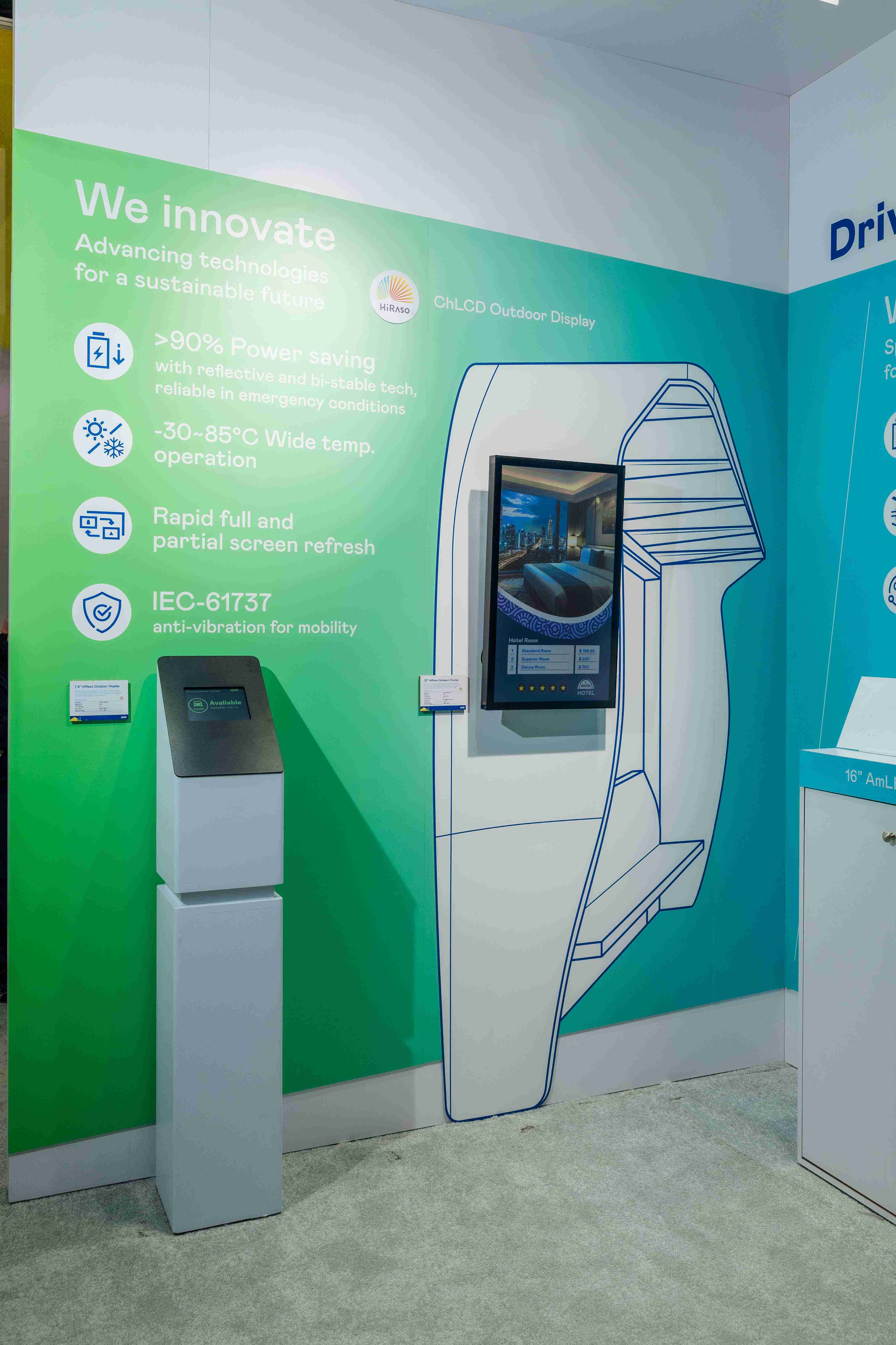 HiRaso胆固醇液晶显示器运用反射环境光线的方式,,,呈现影像显示时零耗能的环保省电诉求,,光线愈强愈能呈现绝佳的色彩饱和度及显示效果,,同时在摄氏-30度至85度间宽温的使用优势,,为户外电子看板的新首选。。。。