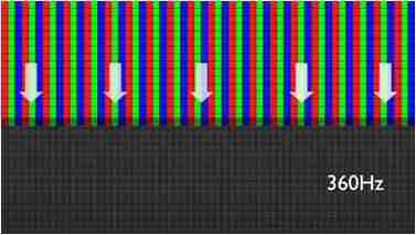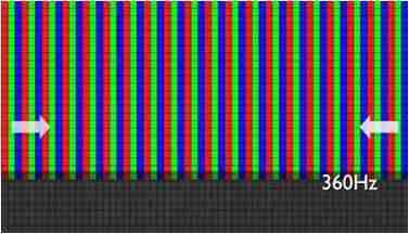 传统液晶驱动是从左到右单向进行,,在画面更新速度愈来越愈快的情况下,,,位于驱动线路末端的右下角区域,,,画素的闸极来不及在短时间内获得足够电压,,,无法显示出正确的颜色资讯。。。。 |
